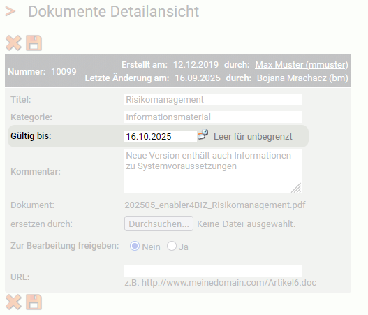 Bisher war es bereits möglich, bei Plattformdokumenten ein „Gültig bis“-Datum anzugeben: